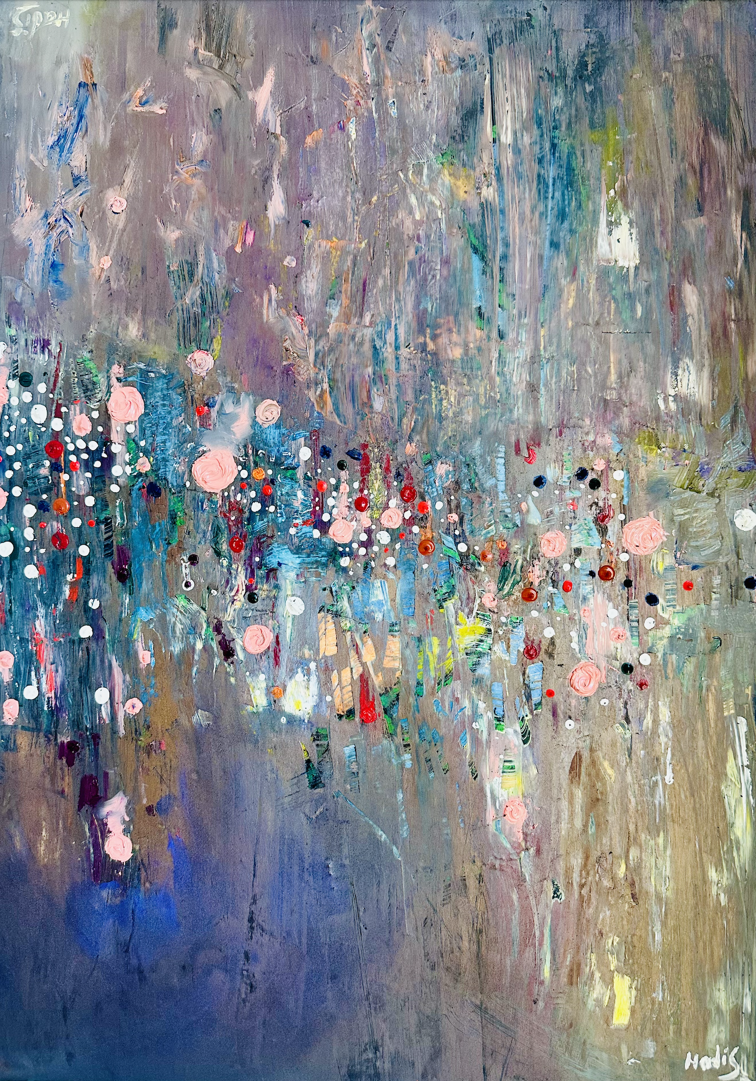I use this destructive process to navigate the tension between the seen and the unseen. In my figurative work (Living Against the Void), I drag this texture over the subject like a veil, obscuring the face to represent the struggle against external forces. In my abstract work, I bury the texture underneath, using it as a rugged foundation for bold, energetic drips of color. In both styles, I don’t believe in perfection. Ruins are more interesting.